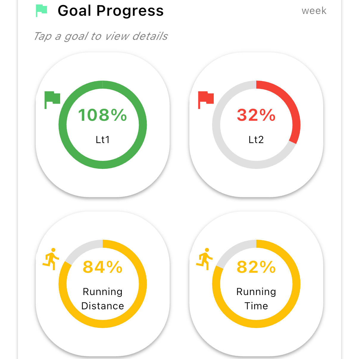 Train to time or distance goals, set easy to understand rings to complete over a time period